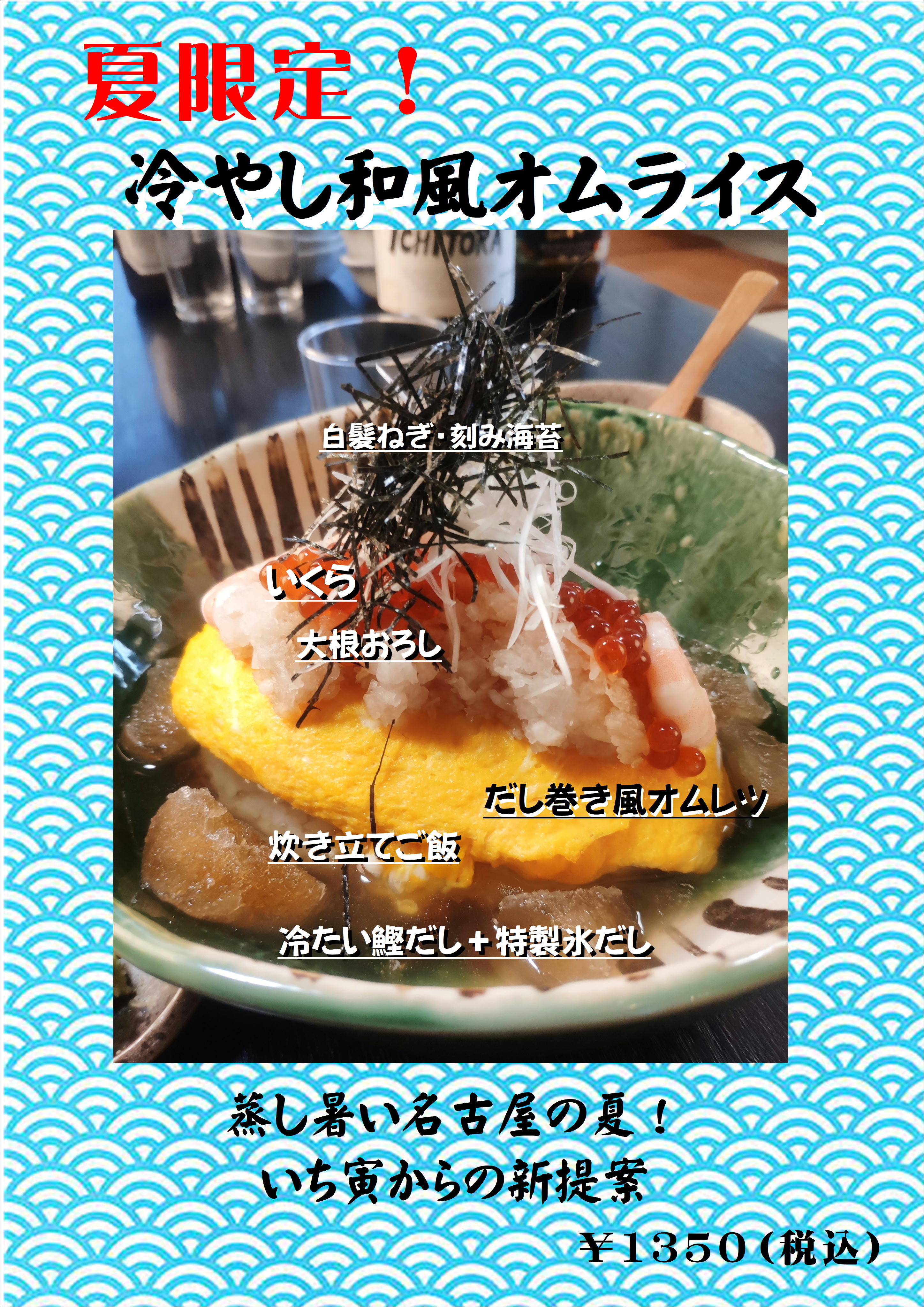 ソースは柚子あんで、さっぱりとした 味付けにしました。これはまさに 純和風のオムライスです。 「うなぎ屋」で味わえない「うなぎ」を 是非「いち寅」で味わってください。