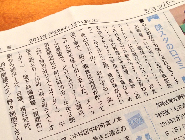 ◆中日新聞折り込み「モクアサ」に掲載